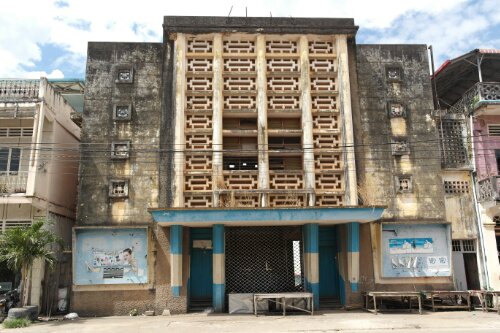 Kampot is just off the south coast inland slightly and on the river. It is dominated by crumbling French colonial architecture and if you look hard enough and shut out the sights and sounds of modern day Kampot you can just about imagine the town in its former glory. This is the old cinema.